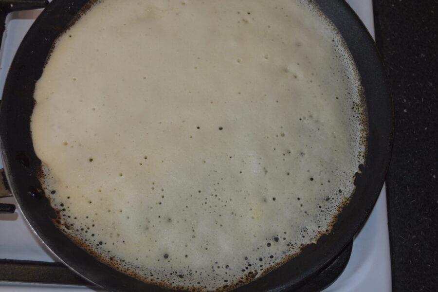 - Обжарьте блины на сковороде, можно смазать небольшим количеством масла, чтобы они не прилипали.