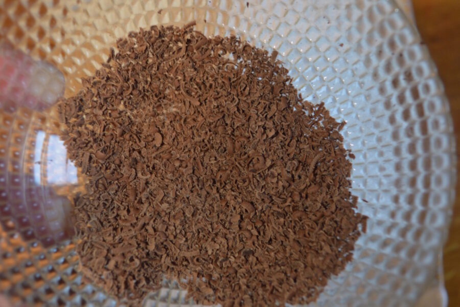 - Натрите шоколад на средней терке.