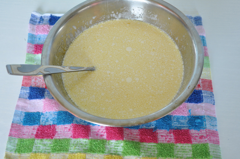 - У меня, как мне показалось, миска оказалась мала, поэтому тесто я перелила в миску большую по объему.