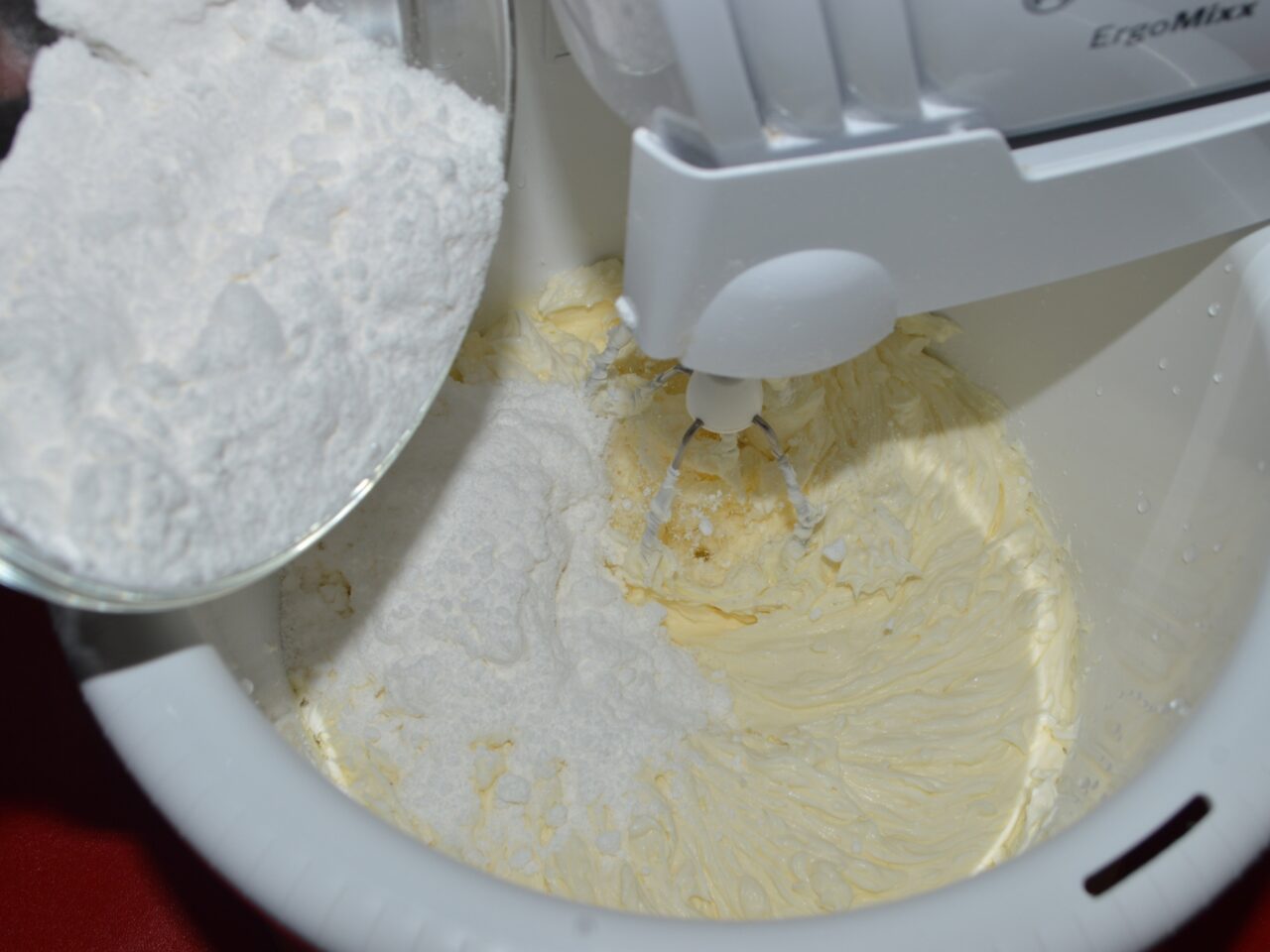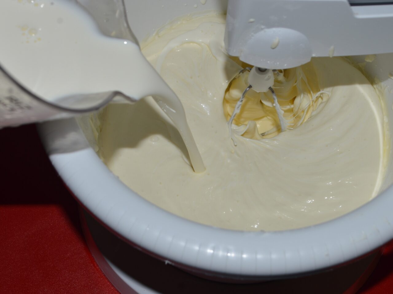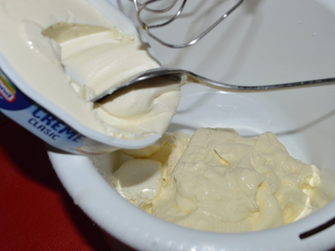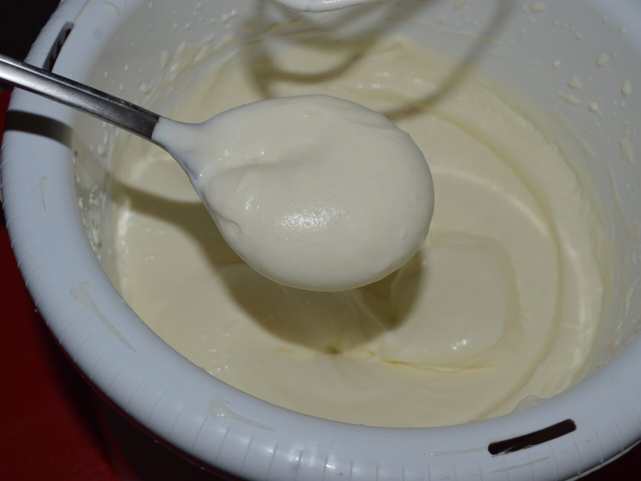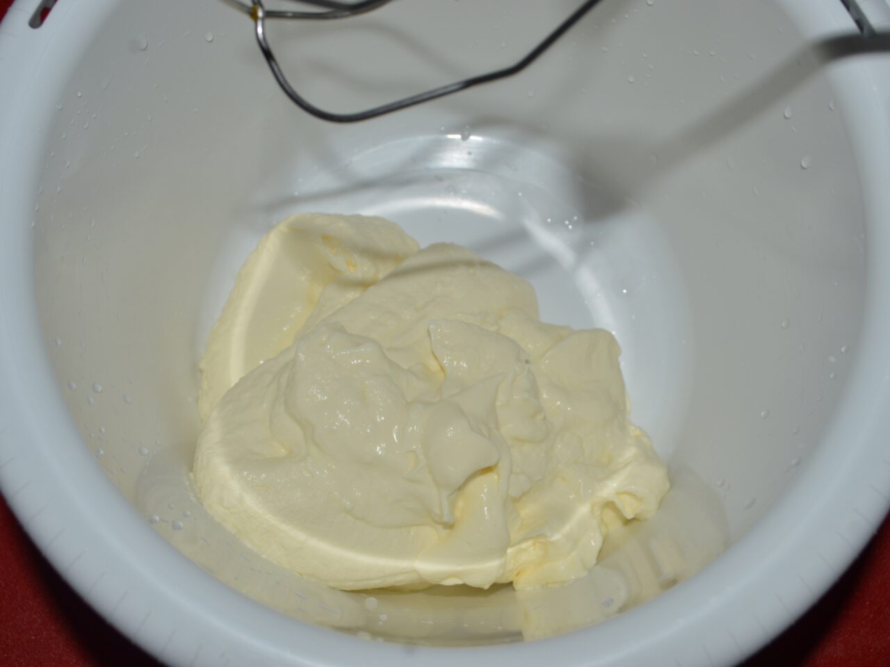- И в конце добавить 33% сливки, хорошо взбить миксером, пока крем не загустеет.