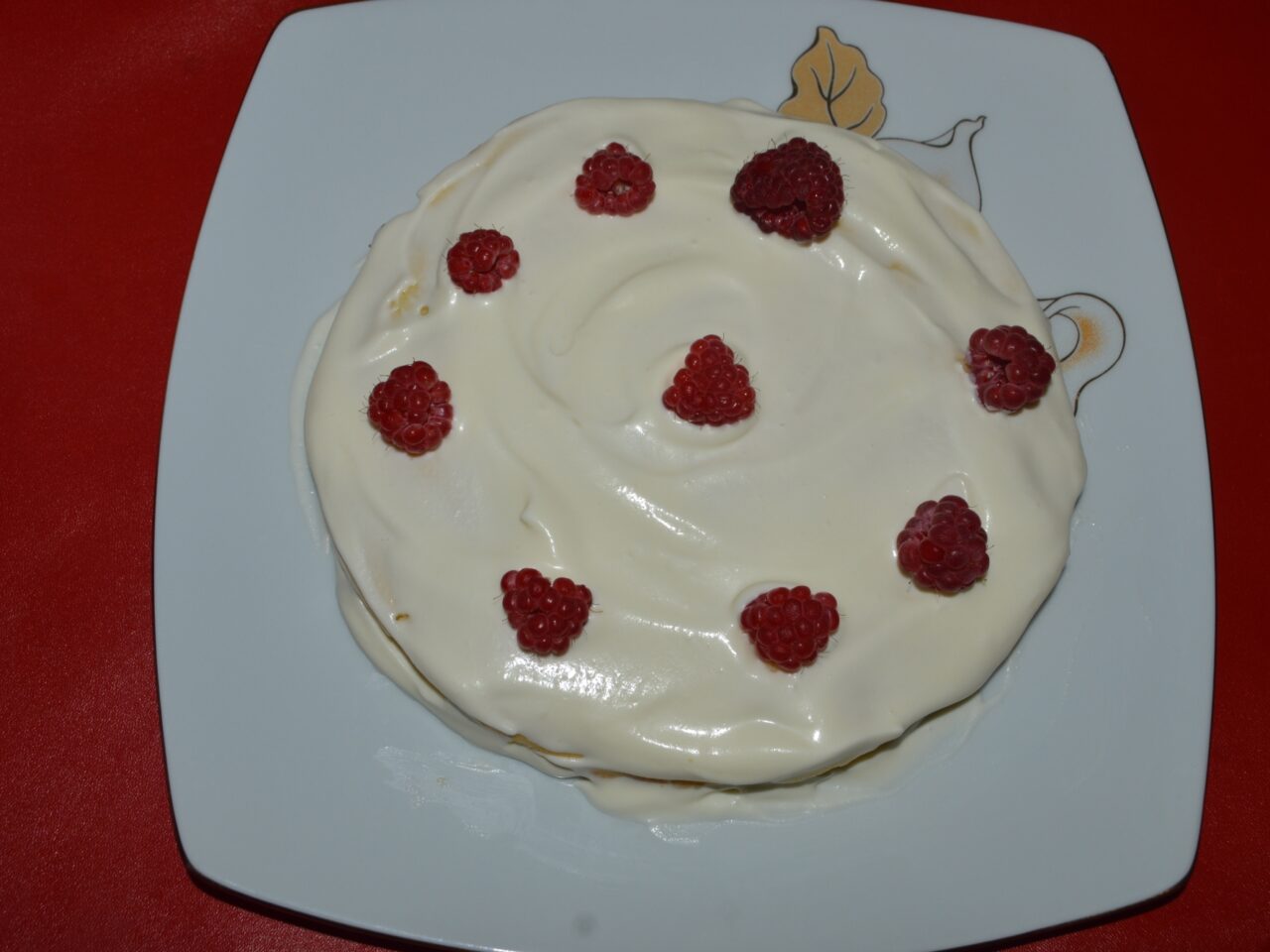 Когда речь заходит о нежных и кремовых десертах, торт « Молочная девочка » — один из моих любимых рецептов. Он готовится из простых ингредиентов, а в результате получается торт с воздушным коржом и нежным кремом. Кроме того, его можно украсить по своему усмотрению любыми фруктами, которые вам нравятся. Я выбрала малину, но можно использовать и клубнику или чернику, они также хорошо сочетаются с текстурой торта.