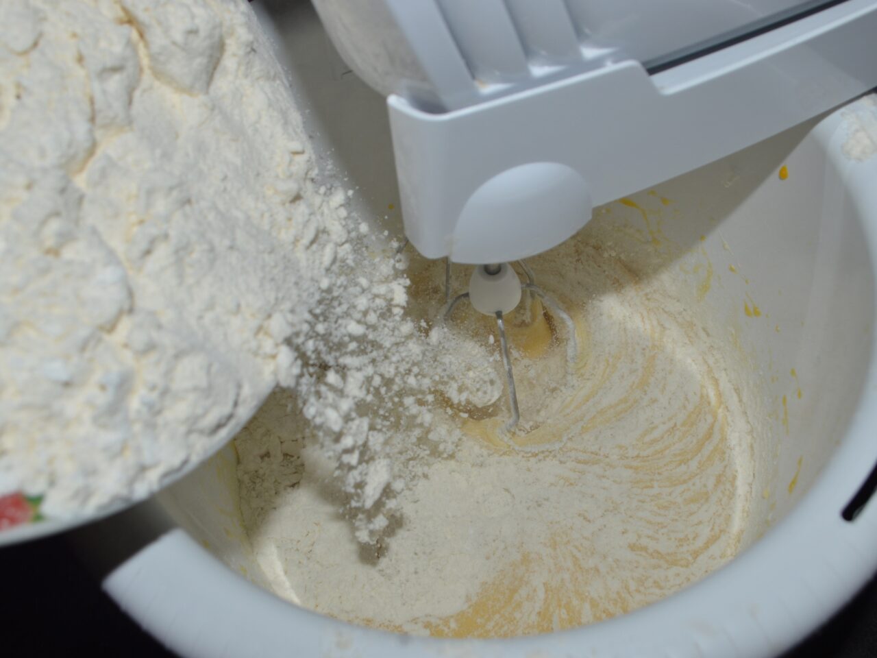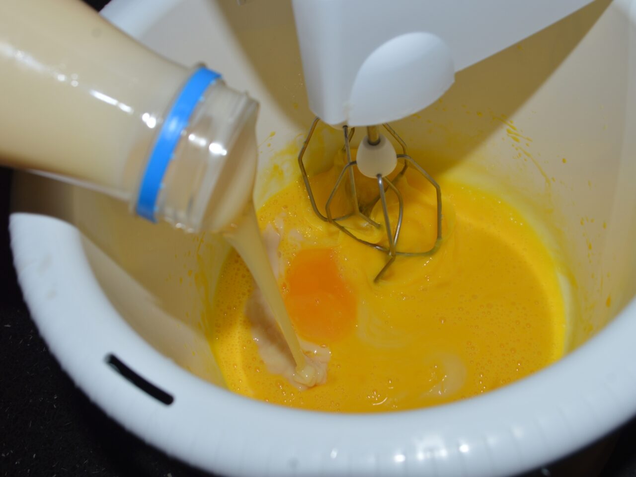 - Затем влейте в смесь и перемешайте до однородной консистенции.