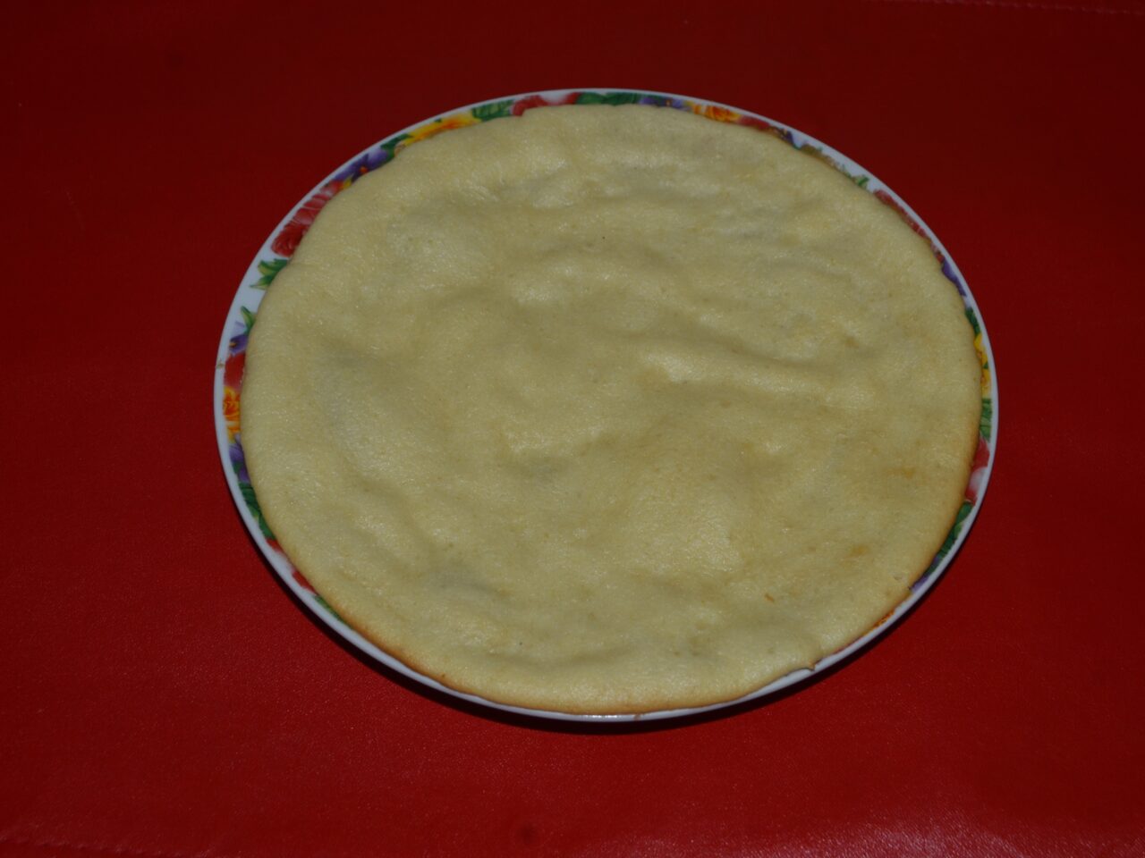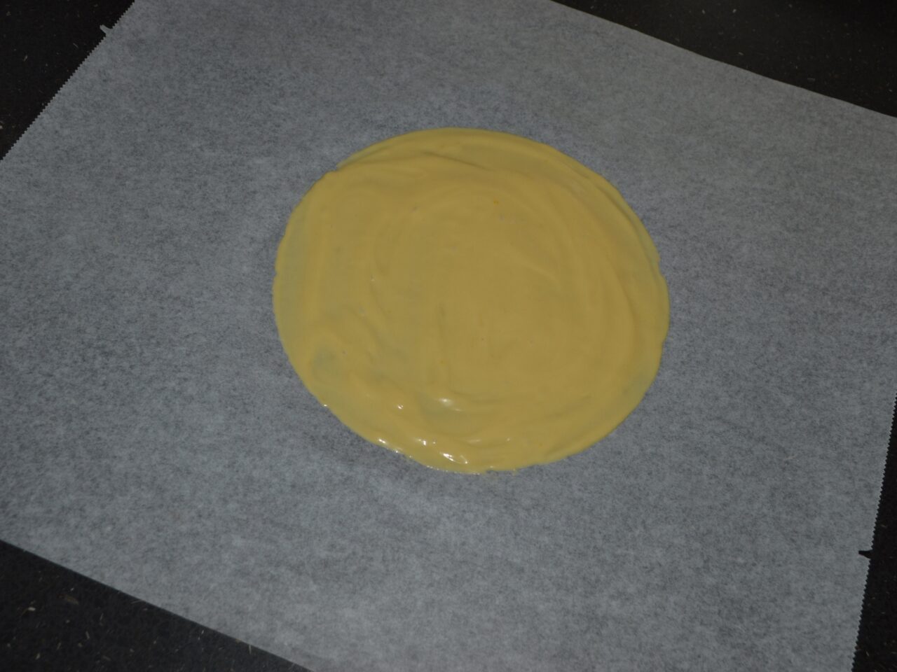 - Перенесите бумагу для выпечки с кругом теста на большой противень, и выпекайте примерно 3-4 минуты при температуре 180 °С.