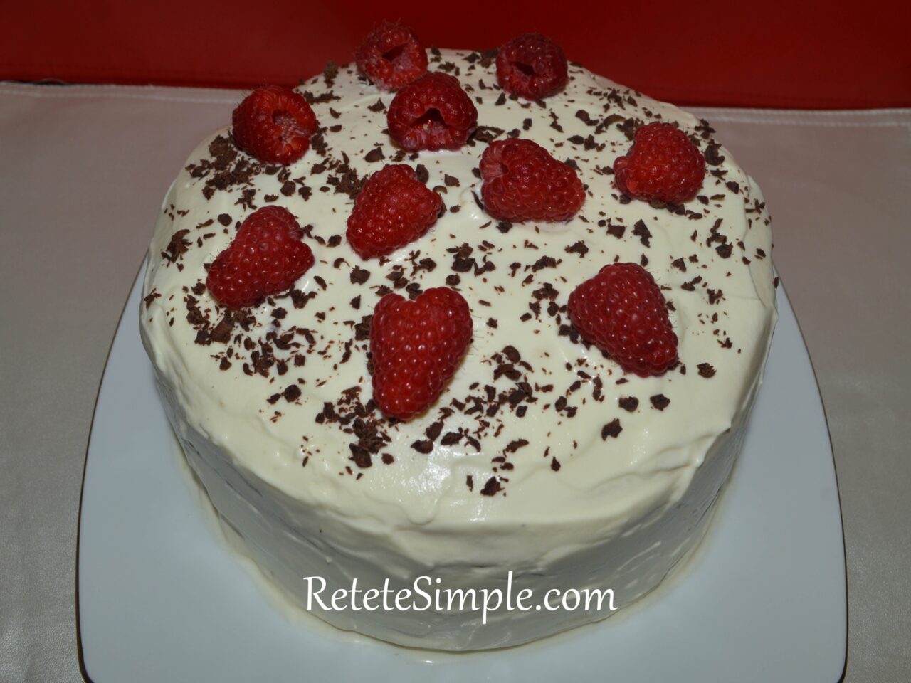 - Натрите немного черного шоколада и посыпьте им торт, затем разложите малину. Вы можете украсить торт по своему усмотрению, если у вас есть другие ягоды или клубника, можете использовать их. Поставьте торт в холодильник на ночь.