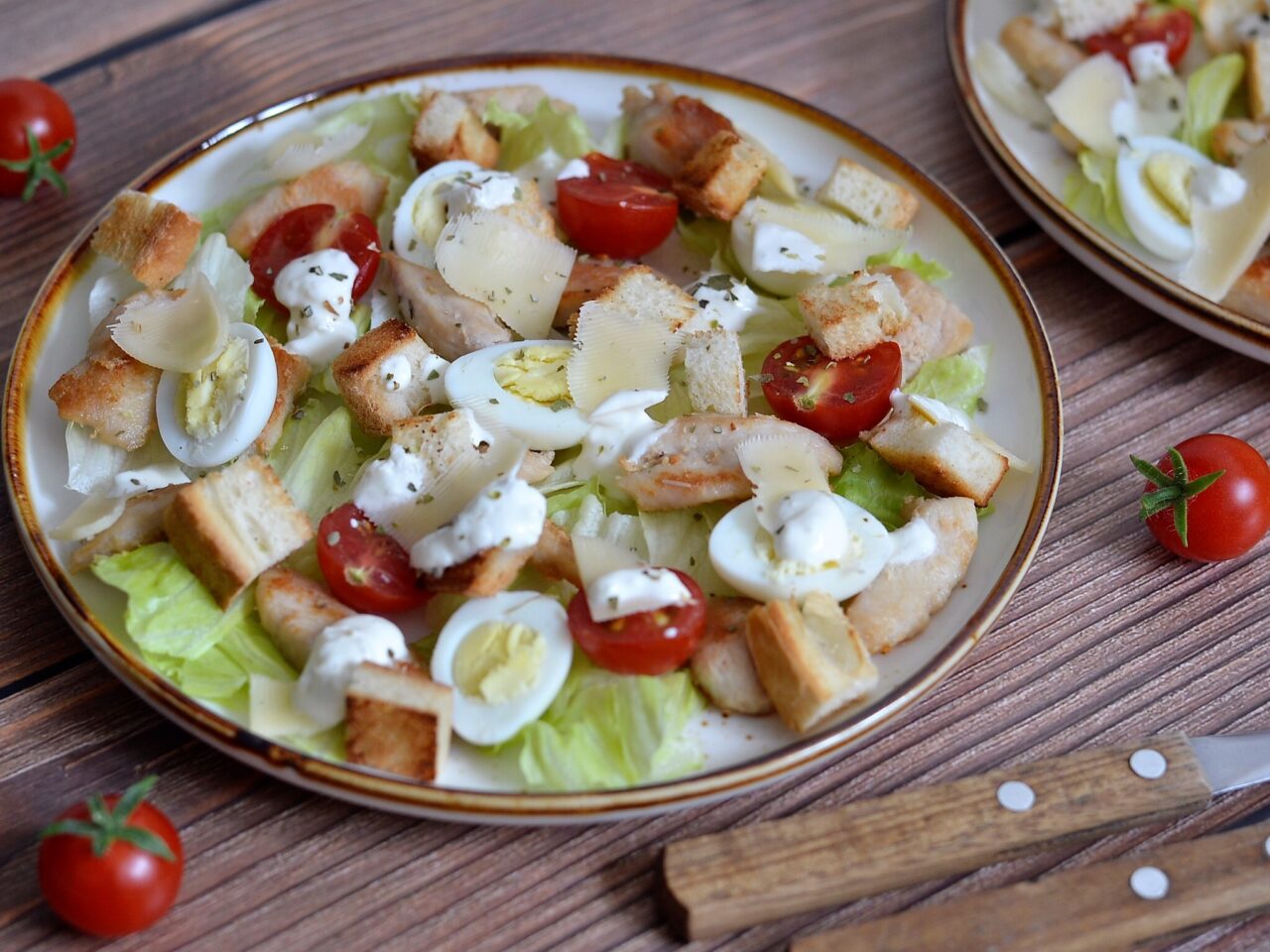 Салат Цезарь с курицей, перепелиными яйцами и черри — это блюдо, которое всегда смотрится эффектно и подходит как для повседневного меню, так и для праздничного стола. Легкий, свежий и в то же время сытный, он станет отличным выбором для тех, кто любит простые в приготовлении и в то же время элегантные блюда. Приготовим простой, но очень вкусный и красивый порционный салат «Цезарь» с филе куриной грудкой, перепелиными яйцами и черри, заправленный вкусным сметанно-чесночным соусом.