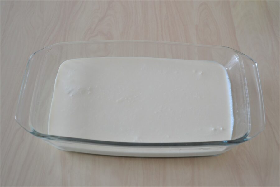 - Аккуратно заливаем бананы подготовленной творожно-кефирной массой.