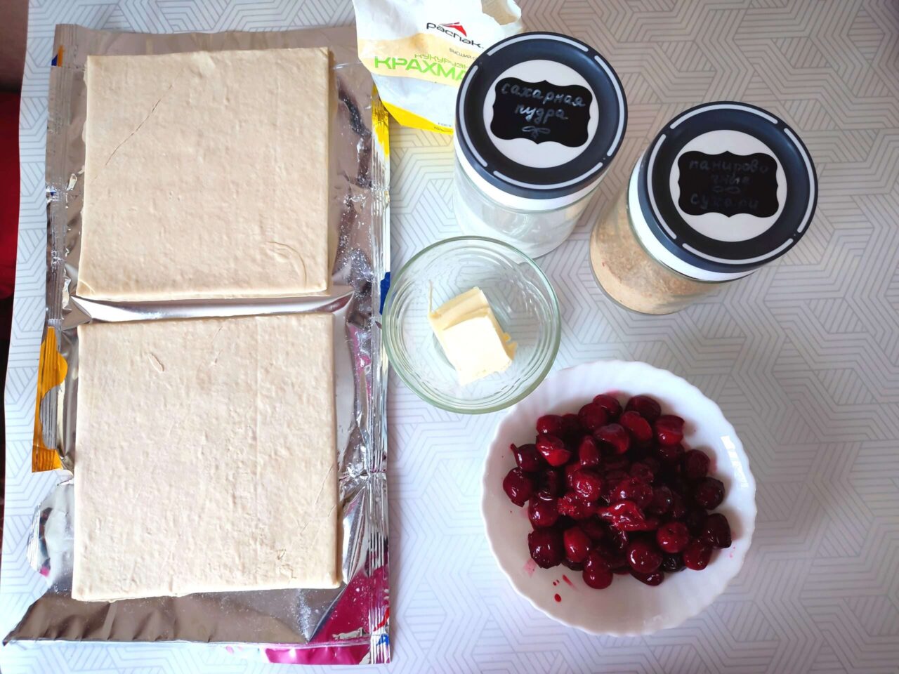 Вишневый штрудель – это десерт с тонким тестом и сочной ягодной начинкой, который пришёл к нам из европейской кухни. Он сочетает нежность, хруст и насыщенный вкус вишни. Готовое слоеное тесто позволяет быстро испечь вкусный десерт для семьи и гостей. Если разложить пласты отдельно, для размораживания достаточно 40 минут.Вишнёвый штрудель — это классика австрийской и немецкой кухни: тончайшее вытяжное тесто, уютная вишнёвая начинка, ореховая крошка и сухари, которые впитывают сок и не дают тесту размокнуть .