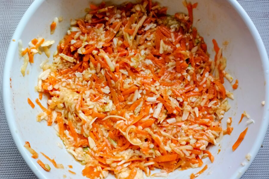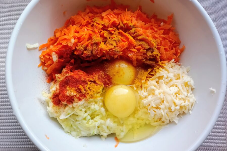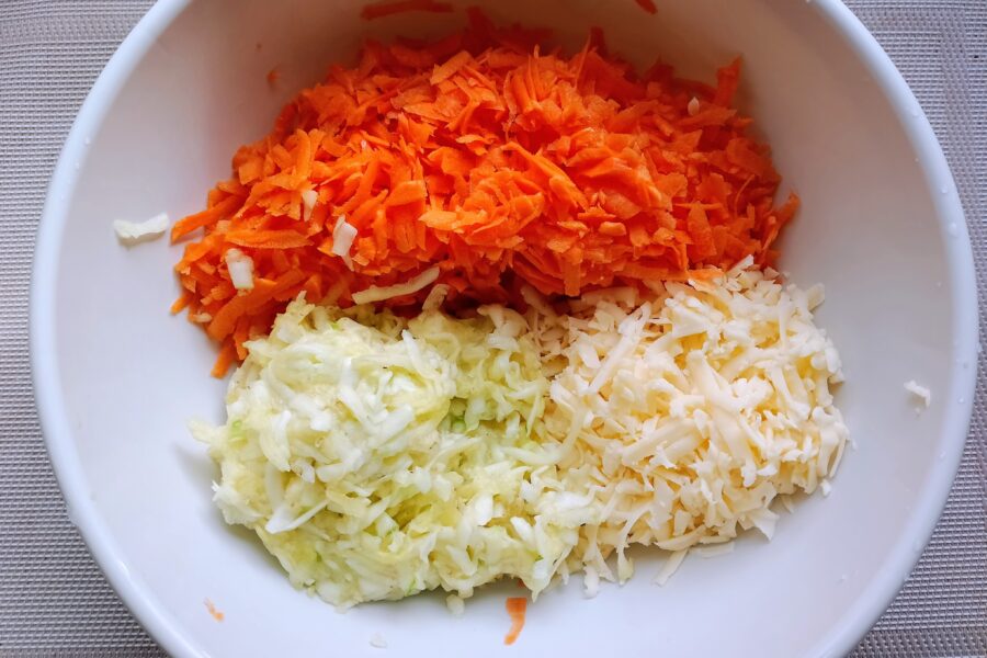 - Intr-un bol separat, amestecati morcovii, cascavalul si dovlecelul bine stors.