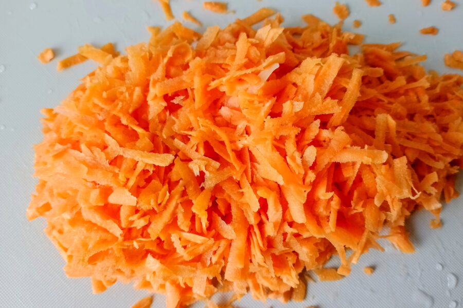 - Curatati morcovii, spalati-i bine si radeti-i la fel ca dovlecelul.