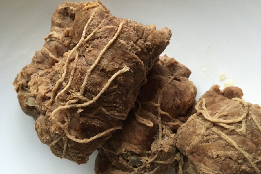 - Se rulează și se înfășoară strâns cu fir de bumbac nevopsit. Se leagă strâns.