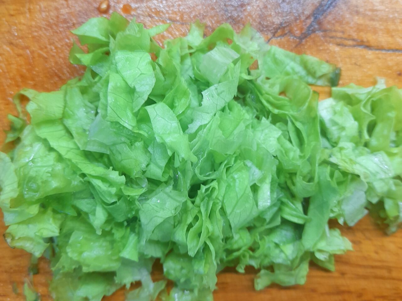 - Rupeți sau tăiați grosier frunzele de salată cu mâinile.