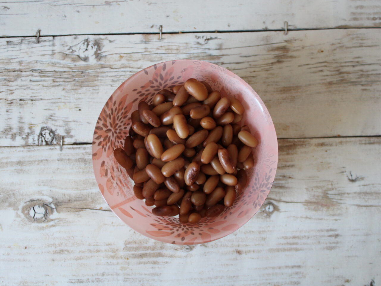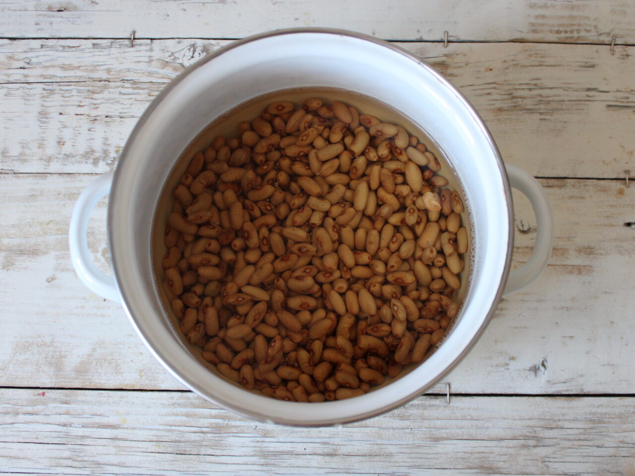 - Fasolea trebuie spălată și turnată cu apă rece în ajunul zilei de preparare a salatei și lăsată peste noapte să se umfle, acest lucru ajută la reducerea timpului de gătire. Pot fi folosite și alte soiuri de fasole.