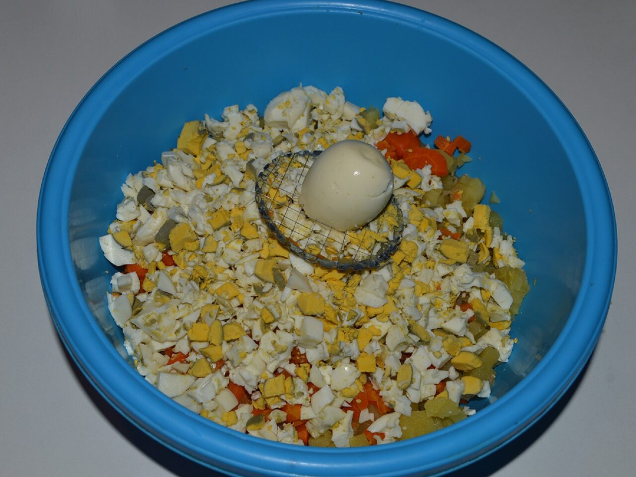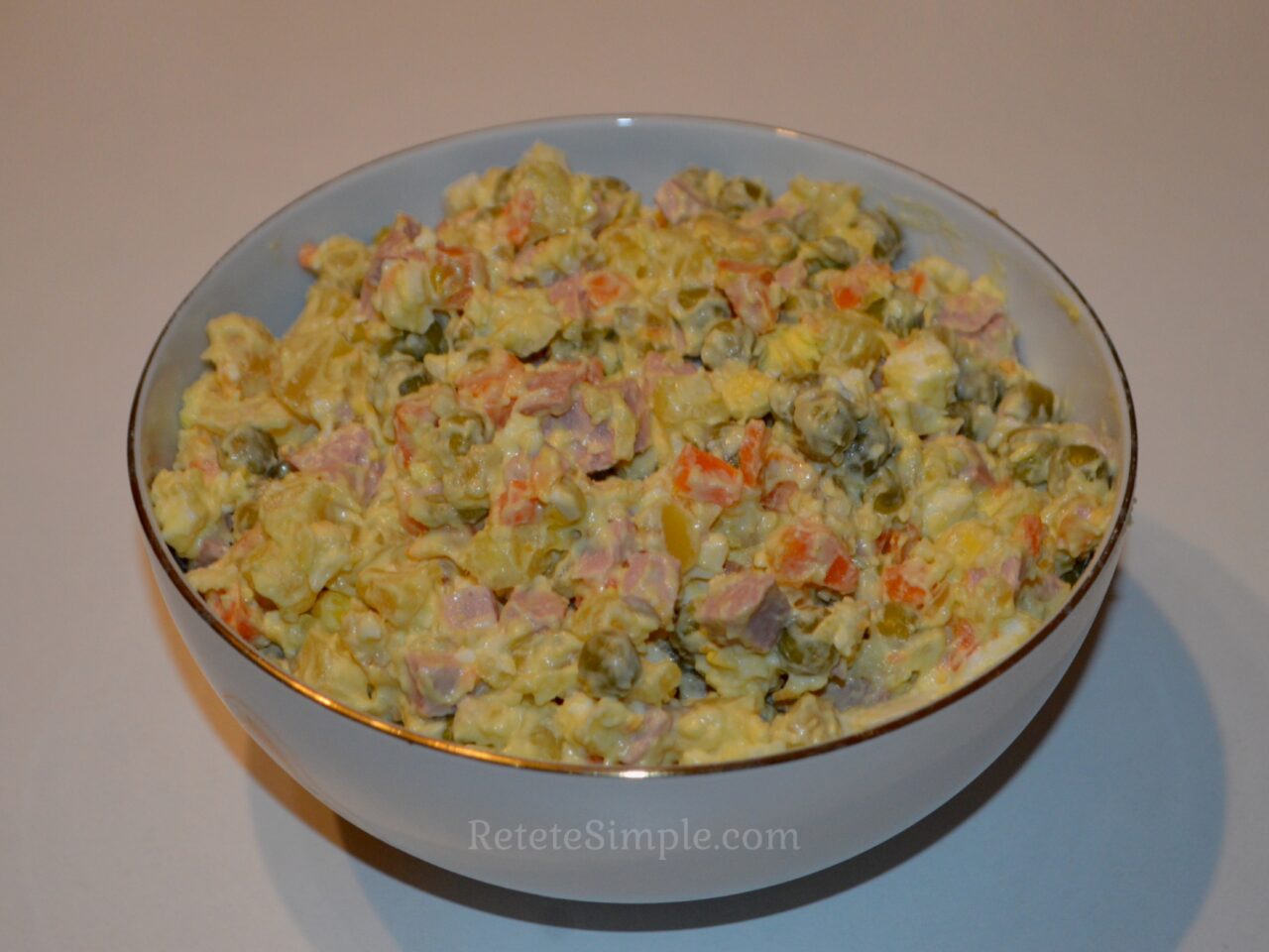 Fie ca o servesti ca aperitiv sau ca garnitura, salata Olivier adauga un plus de savoare si culoare oricarei mese. Descopera in aceasta reteta cum sa pregatesti Salata Olivier in cel mai simplu mod, pas cu pas, pentru a impresiona pe oricine o va gusta. Salata Olivier aduce intotdeauna un strop de nostalgie si confort. In plus, este foarte usor de facut in avans, astfel ca poti sa te bucuri de o masa delicioasa fara a petrece prea mult timp in bucatarie.