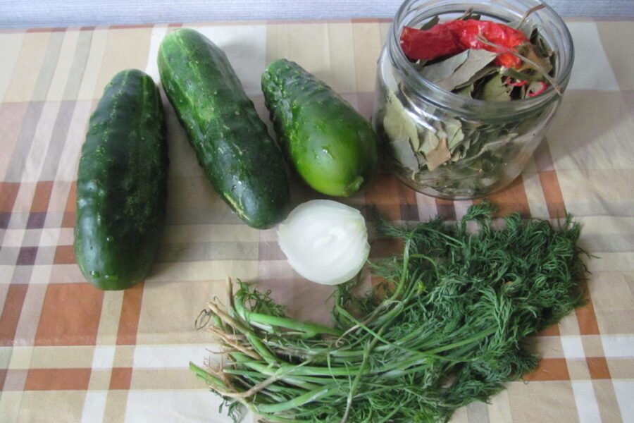 - Se sortează castraveții după mărime, aproximativ 1 kg. Spălați-i sub jet de apă. Apoi tăiați castraveții în cercuri, grosimea nu trebuie să fie mai mare de 3 mm. Ceapa în cantitate de 700 de grame se curăță de coajă, fiecare bulb trebuie tăiat în jumătate și tăiat în inele.