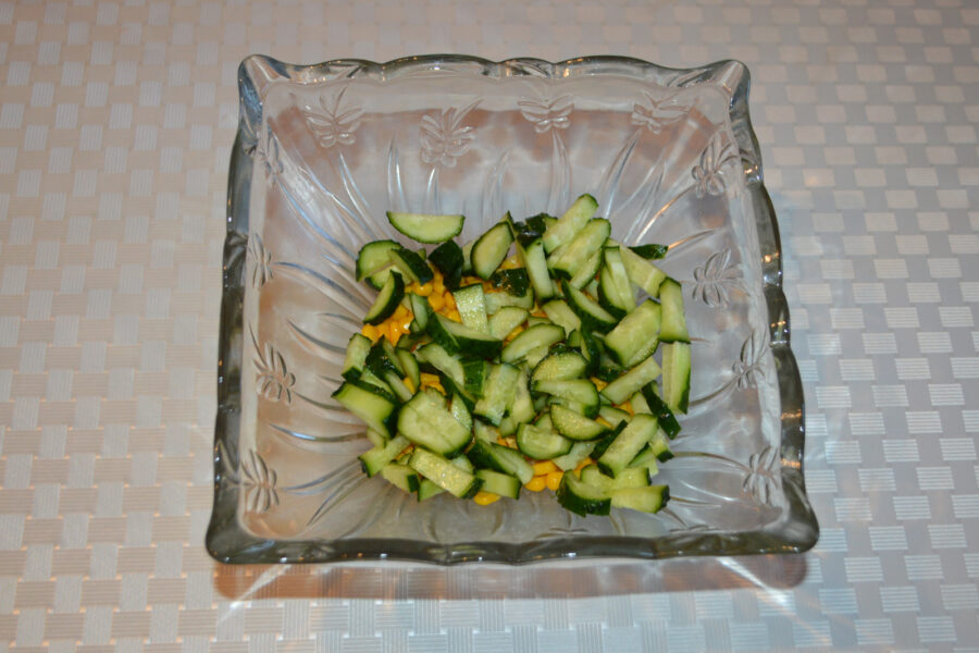 - Pregatiti un bol de salata, si adaugati porumbul conservat.