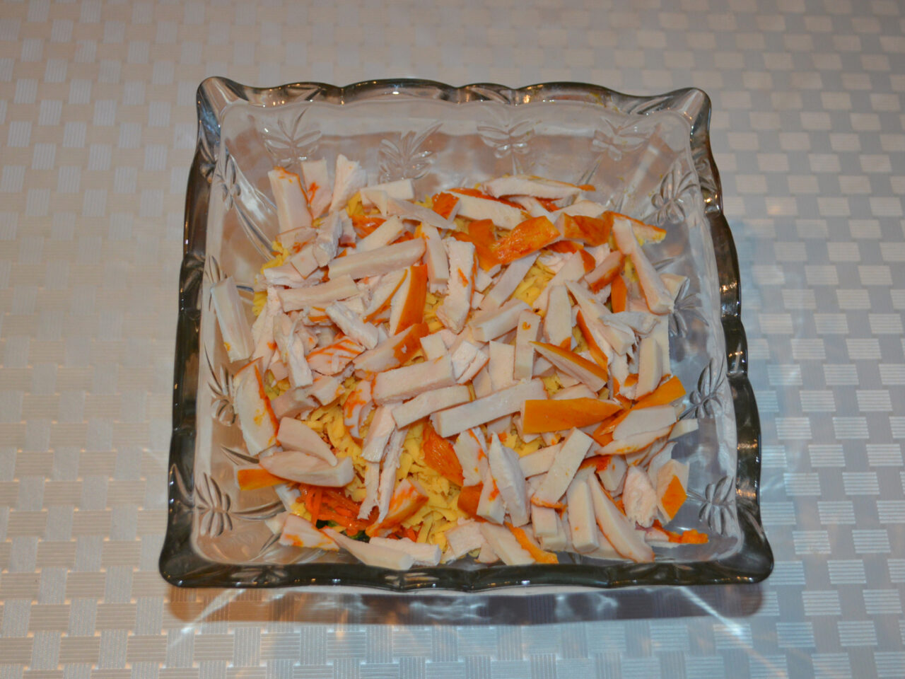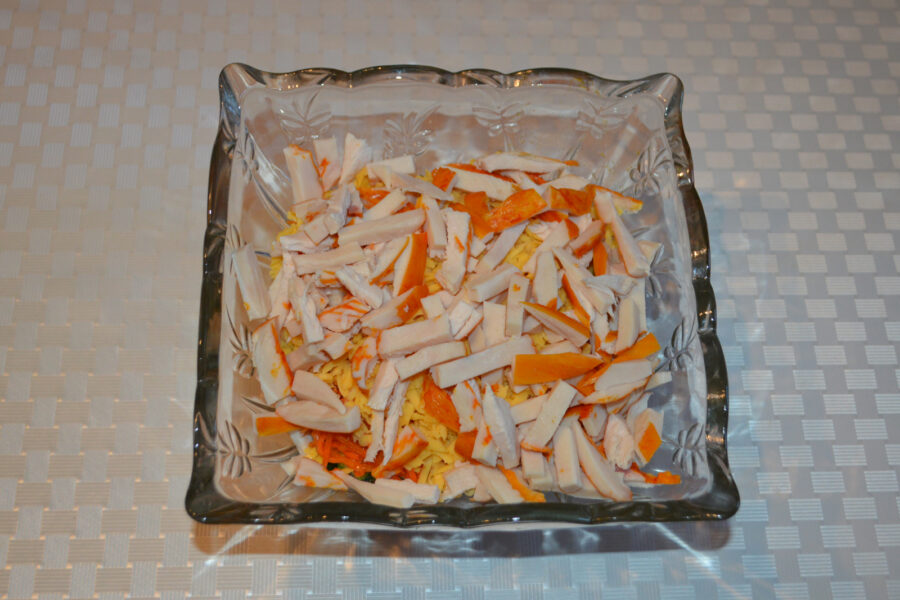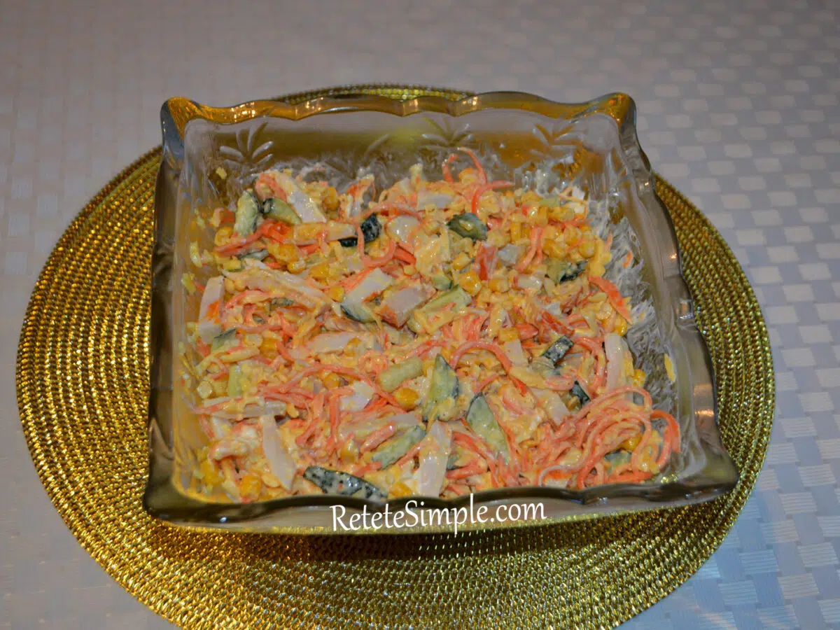 Va propun o reteta de salata usor de preparat, fara fierbere a ingredientelor. Datorita aspectului sau fizic, aceasta salata se potriveste de minune pentru o masa de sarbatoare.