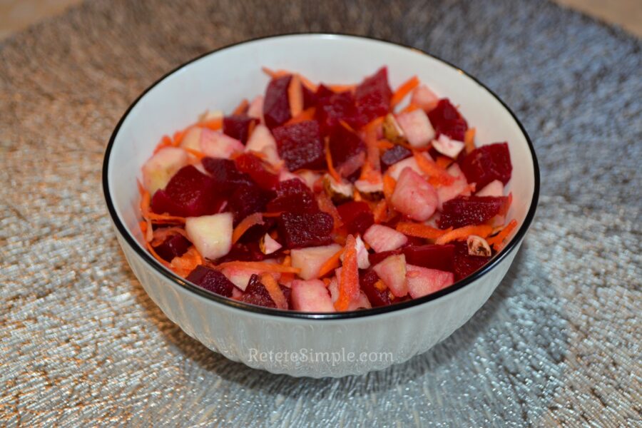 Aceasta salata este ideala atat ca gustare rapida, cat si ca garnitura langa un fel principal. Este perfecta pentru sezonul rece, cand sfecla se gaseste usor, dar poate fi pregatita oricand ai pofta de ceva diferit, usor si hranitor. Poate parea ciudat sa combini sfecla cu mere, dar te asigur ca este o alegere care functioneaza de minune. Daca nu ai mai incercat pana acum aceasta combinatie, lasa-te surprins de cat de bine se potrivesc aceste ingrediente.