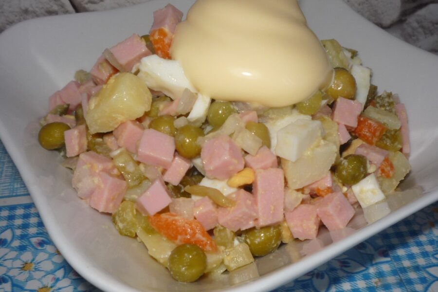 Salata Olivier cu salam si mere este un preparat ideal pentru momente cand vrei un gust complex si echilibrat, fara sa depui efort mare. Aroma specifica salamei se contopeste cu prospetimea merelor, iar dressingul cremos le leaga intr-o simfonie placuta. Este perfecta pentru mesele festive sau pentru gustari cand primesti musafiri, aducand culoare si savoare pe masa ta.