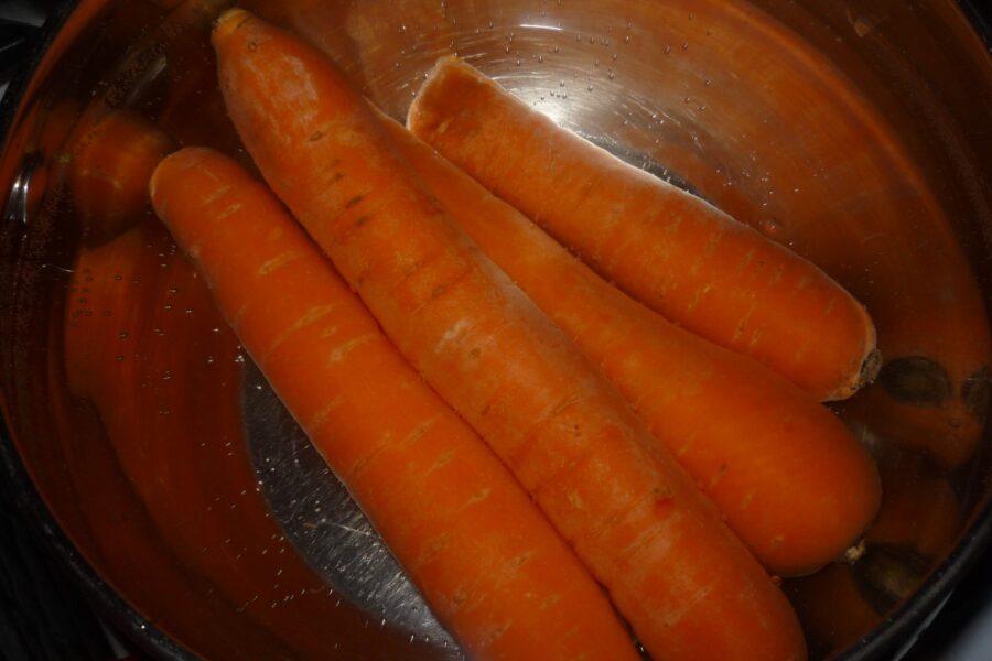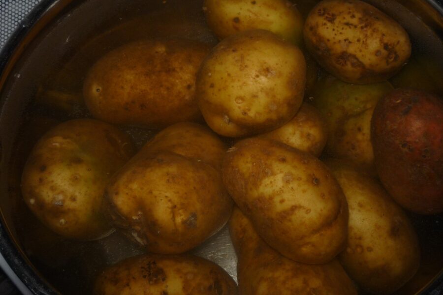 - Fierbeți cartofii, morcovii și ouăle până se înmoaie.
