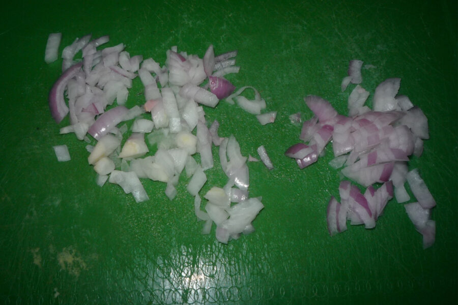 - Tăiați mărunt ceapa. Am luat mai multă ceapă, pentru că sunt dulci pentru noi.