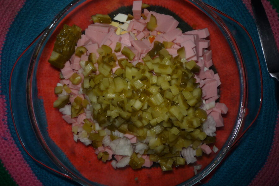 Acesta este ceea ce vom pregăti astăzi. Dar vom adăuga o mică întorsătură lui Olivier adăugând un măr în salată.