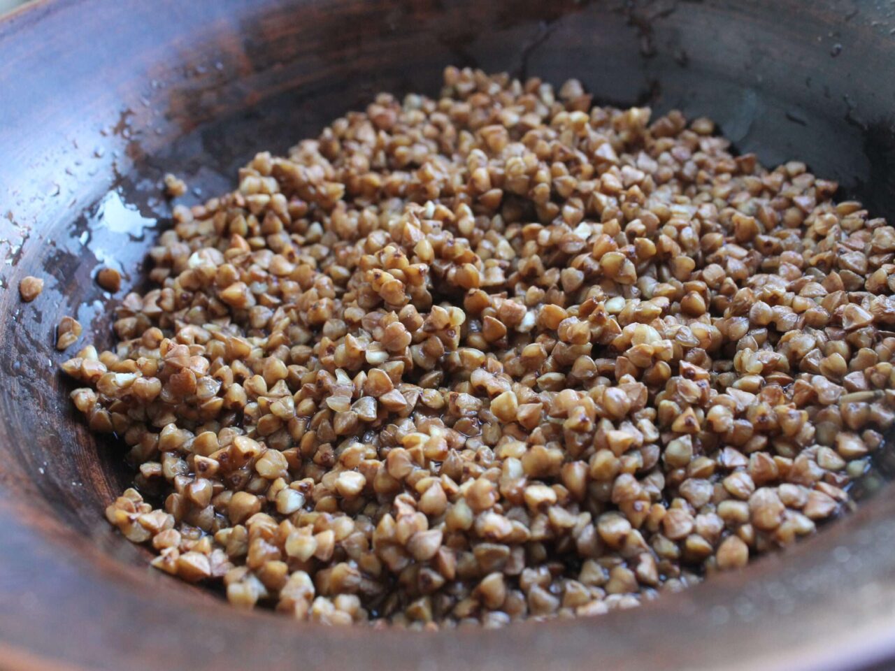 - Gatiti un pahar de hrisca cu un pahar de apa usor cu sare pana al dente. Scurg excesul de apă.