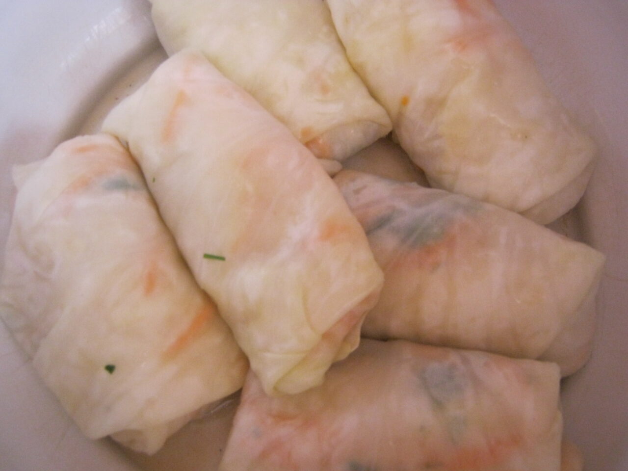 - Înfășurați o lingură de morcovi în fiecare frunză de varză.