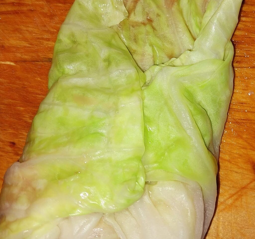 - Scoateți un fund de bucătărie din lemn. Puneți frunza de varză pe ea.
