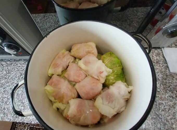 - Se pune la foc mic și se fierbe aproximativ 35 de minute.Sarmalele dietetice se gătesc foarte repede. Și dacă aveți gata carnea tocată, chiar mai repede.