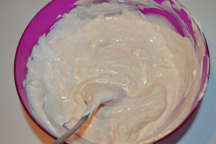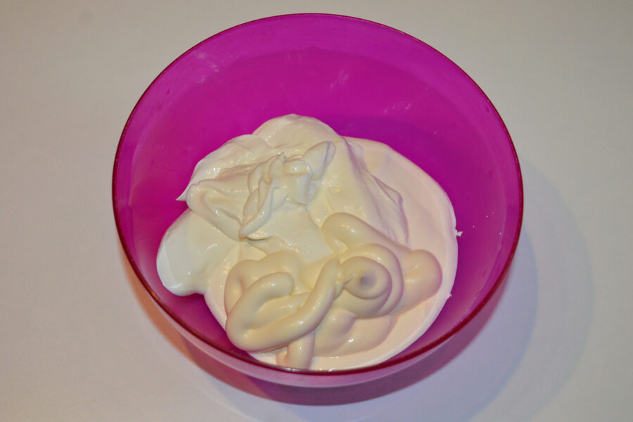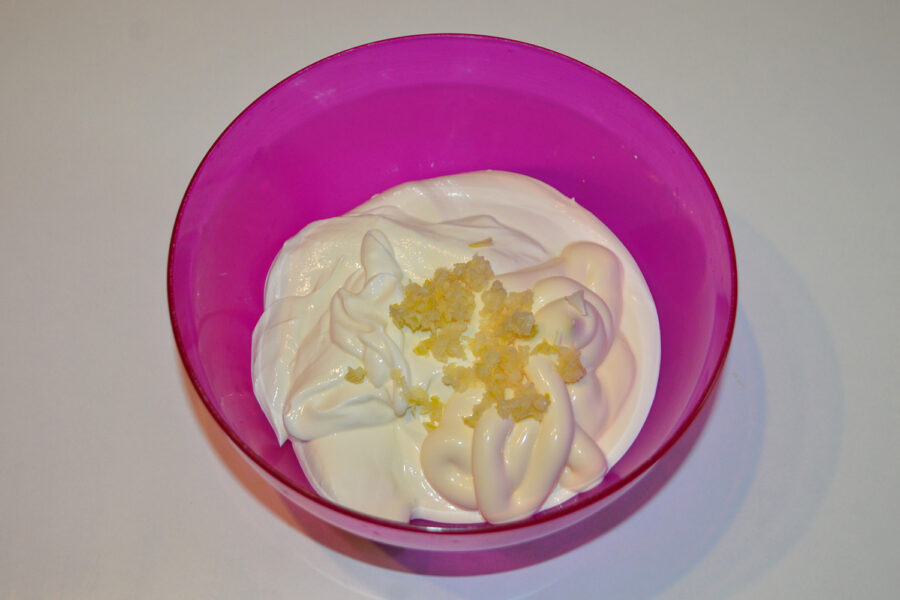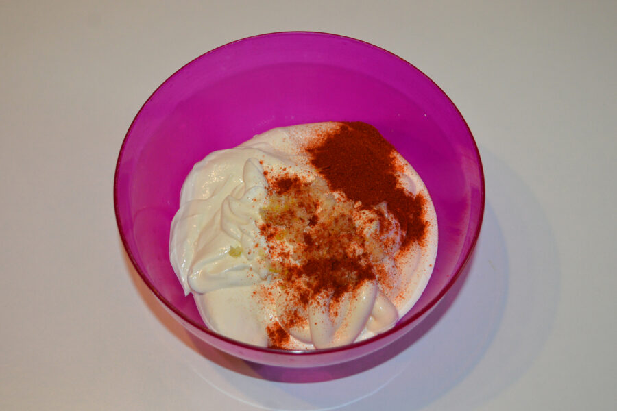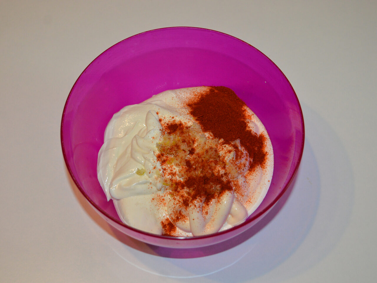 - Prepararea sosului: intr-un bol adaugati smantana si maioneza.