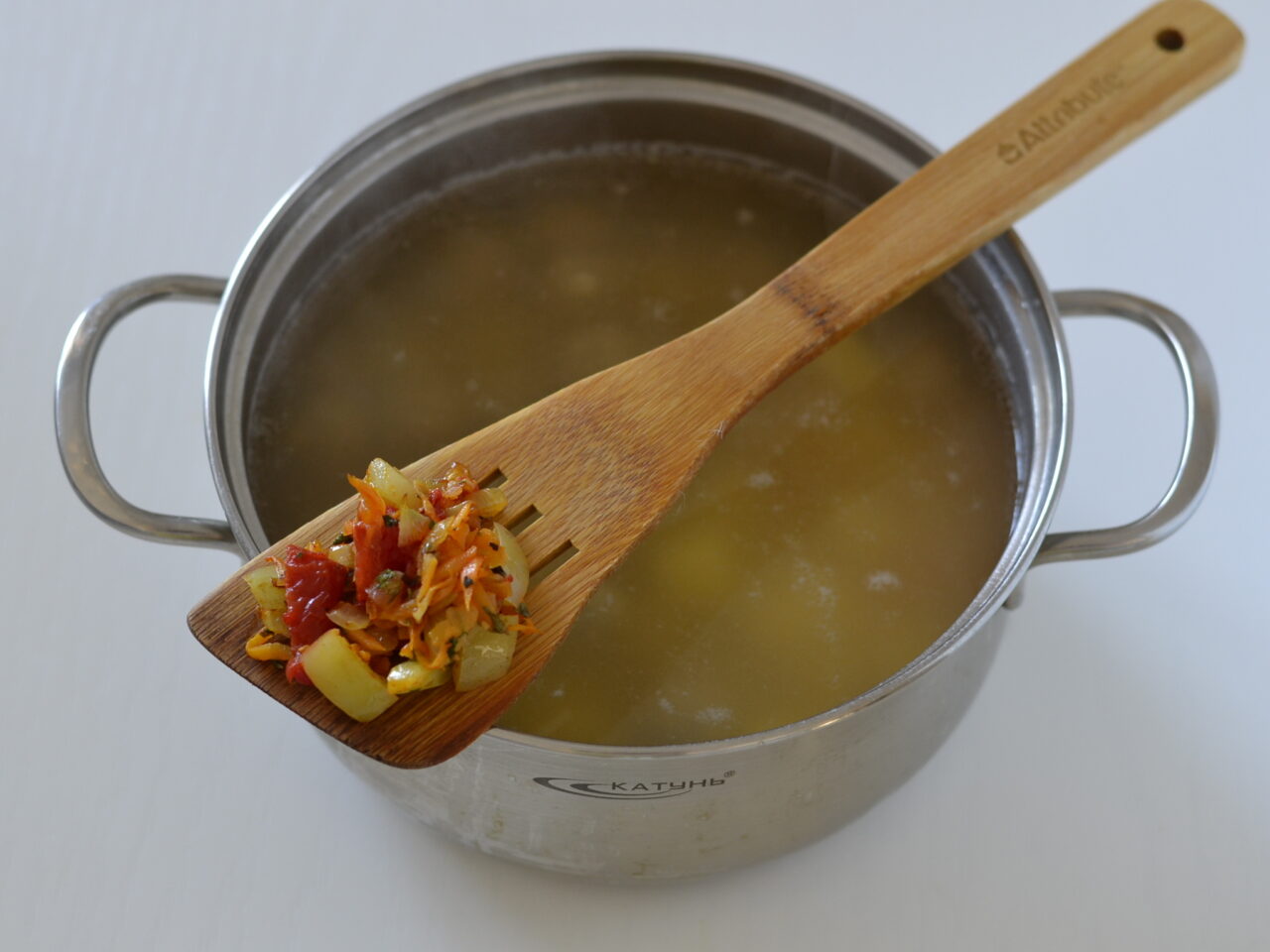 - Se toarnă lintea, se amestecă și se fierbe încă 4-5 minute.