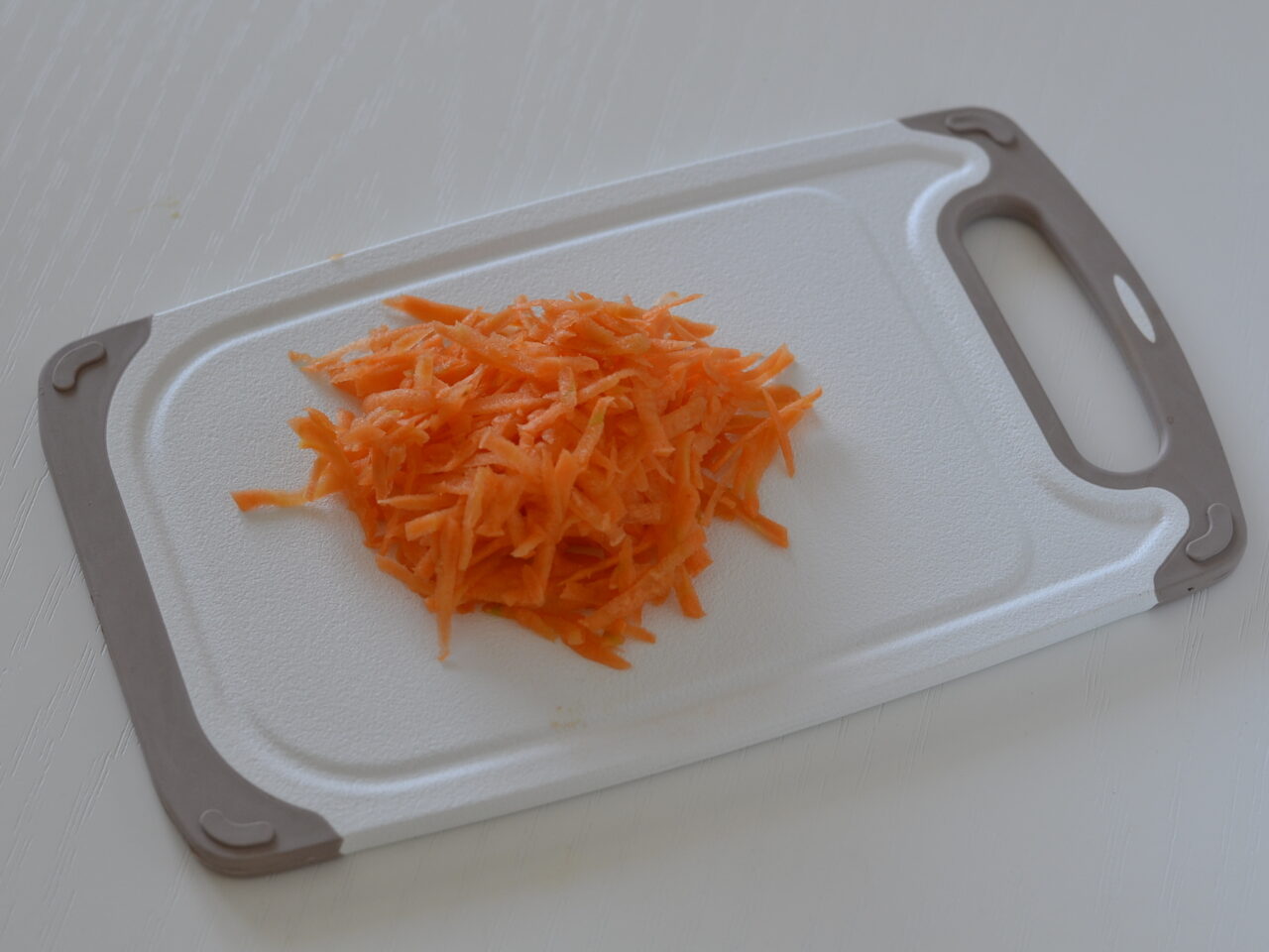 - Morcovii se curăță de coajă și se dau pe răzătoare.