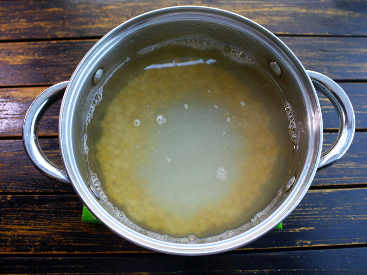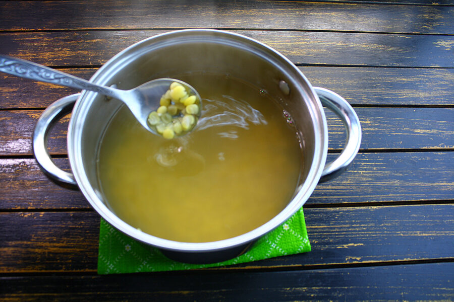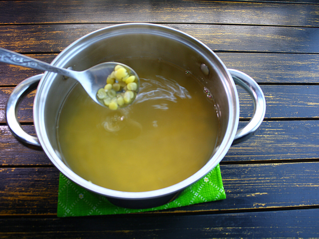 - Mazărea (spălată) se toarnă cu 1,5 litri de apă.
