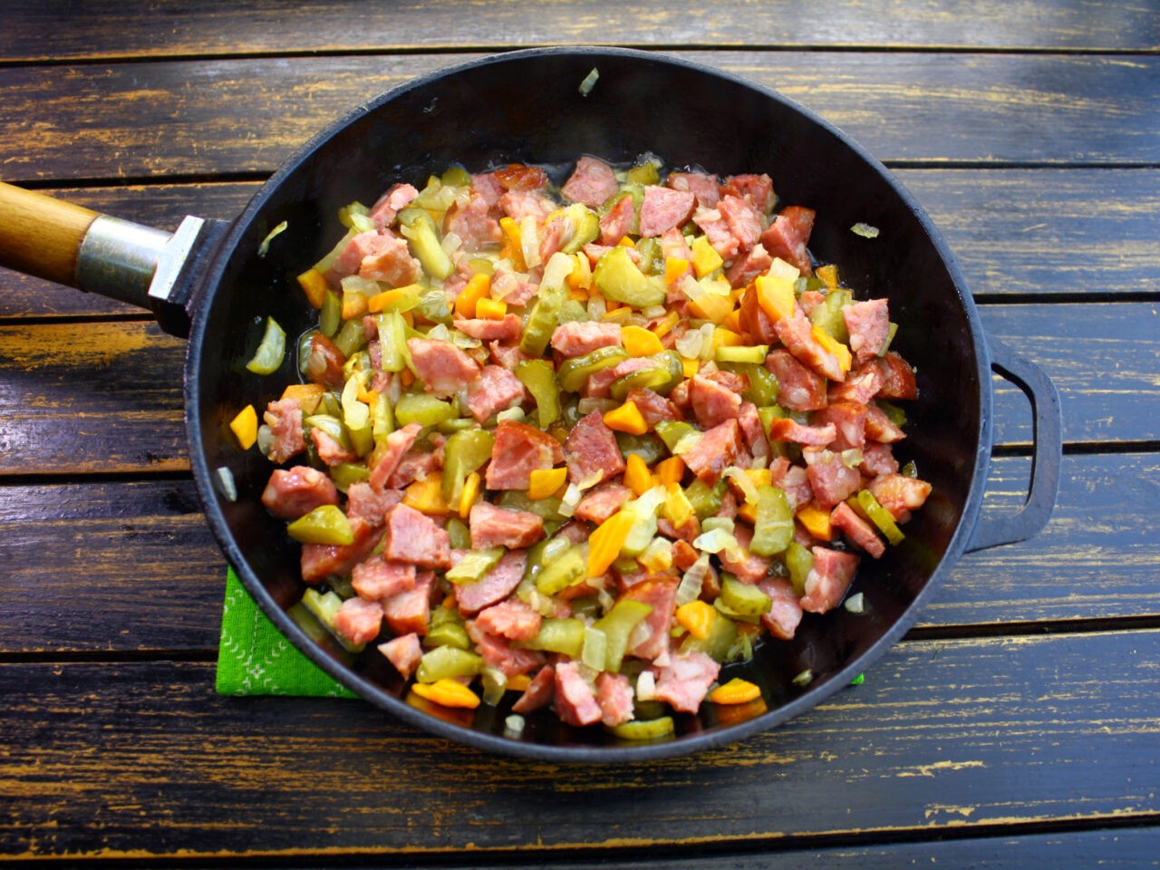 - Se amestecă și se prăjește timp de 3-5 minute.