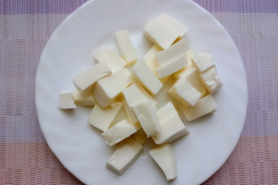 - Taiati cascavalul topit in cubulete mici si puneti-l in cratita impreuna cu condimentul curry si porumbul. Gatiti pana cand cartofii se inmoaie.