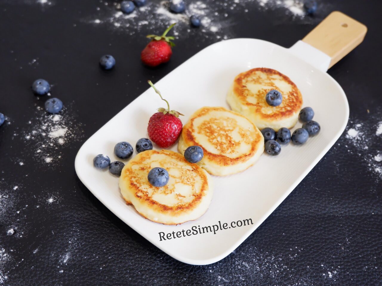 - Prajiti syrniki pana sunt gata. Pentru ca interiorul sa nu ramana crud, puteti acoperi tigaia cu un capac. Serviti syrniki aromati cu fructe de padure, lapte condensat sau gem.