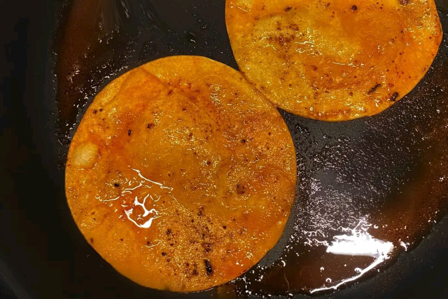 - Transferati carnea si ardeii intr-un recipient, si in uleiul ramas in tigaie prajiti tortilla.