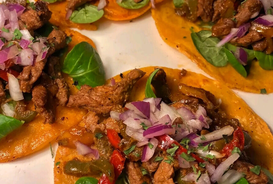 Reteta de tacos mexican cu carne de vita, ardei gras si spanac. Daca doriti sa preparati un tacos delicios si aromat, aceasta reteta este perfecta. In loc la carne de vita puteti folosi carne de porc, sau carne de pui.