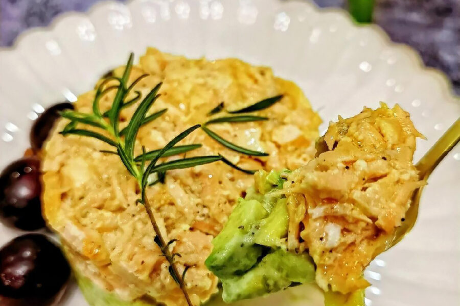 Tartar de somon cu avocado este un aperitiv elegant si rapid, perfect pentru momente cand vrei ceva sanatos si savuros fara coacere. Combinatia dintre somon frecat cu sos de mustar-miere, cremozitatea avocado-ului si dulce-acrisorul de banana plus aroma de rozmarin creeaza un preparat proaspat care impresioneaza.
