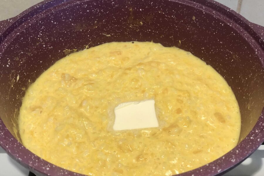 - Adăugați o bucată de unt, amestecați-l și opriți focul.