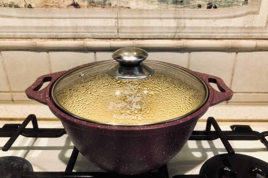 - Se pune într-o cratiță și se toarnă apă rece peste el.