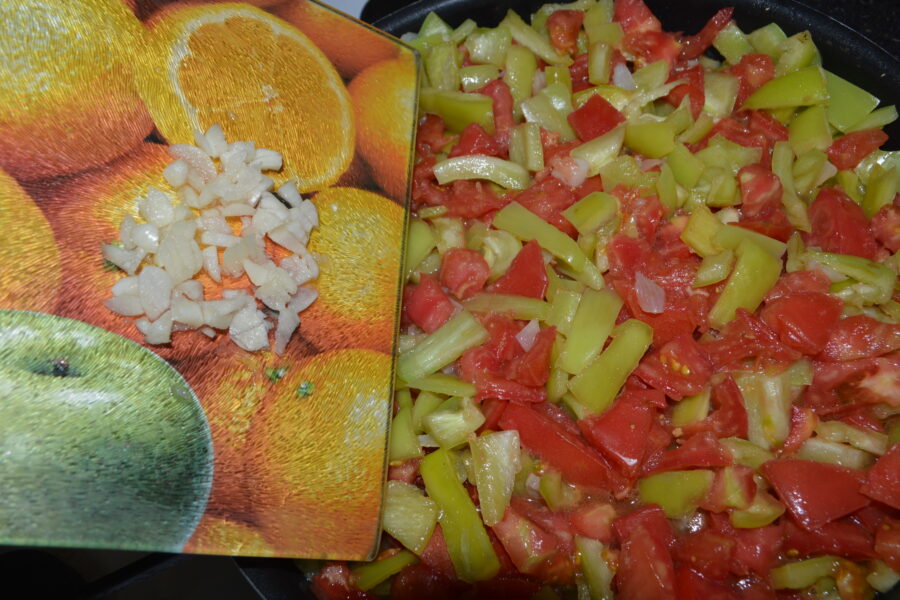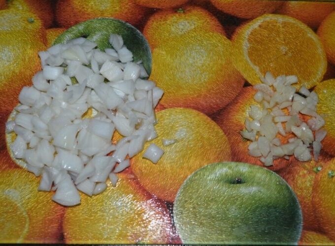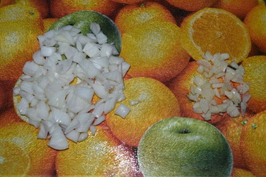 - Taiati ceapa si usturoiul marunt, dar nu le amestecati intre ele.