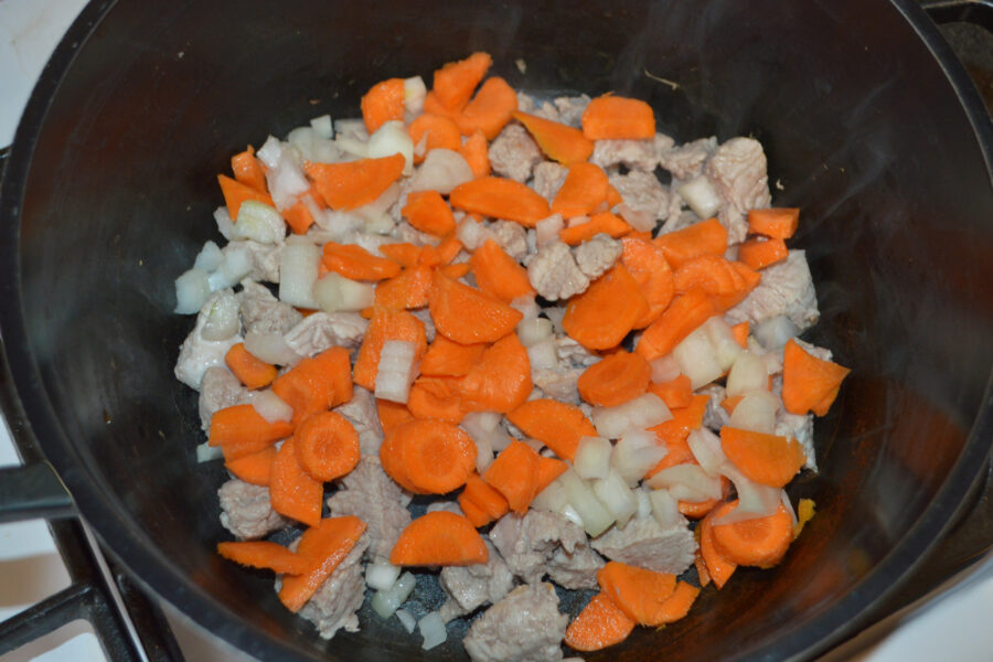 - Taiati ceapa si morcovul, si adaugati-le in ceaun.