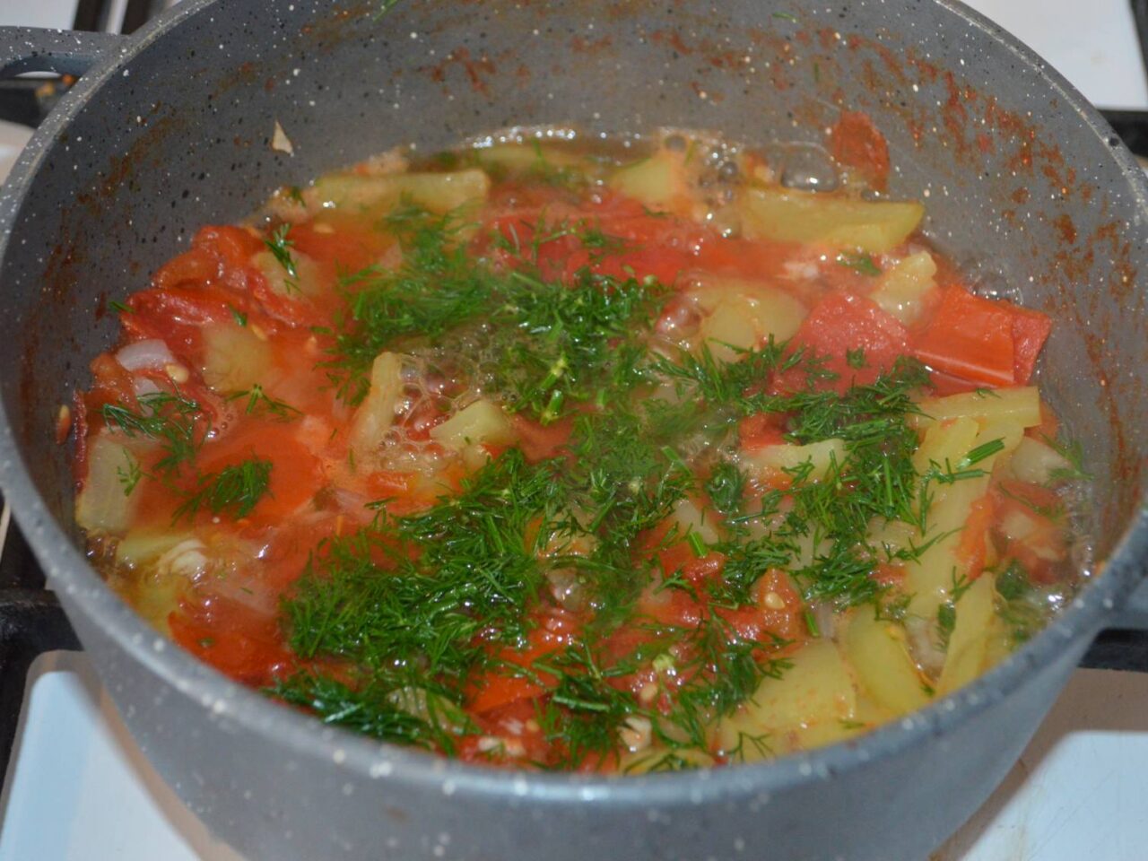 Aceasta tocanita de rosii cu ardei este o optiune culinara excelenta pentru oricine cauta o masa dietetica, gustoasa si satioasa. Unul dintre marile avantaje ale acestei tocanite este modul sau de preparare: fara ulei, gatita doar prin inabusire. Acest lucru o face extrem de usoara si potrivita pentru diete stricte, mentinand in acelasi timp toate aromele si nutrientii legumelor.