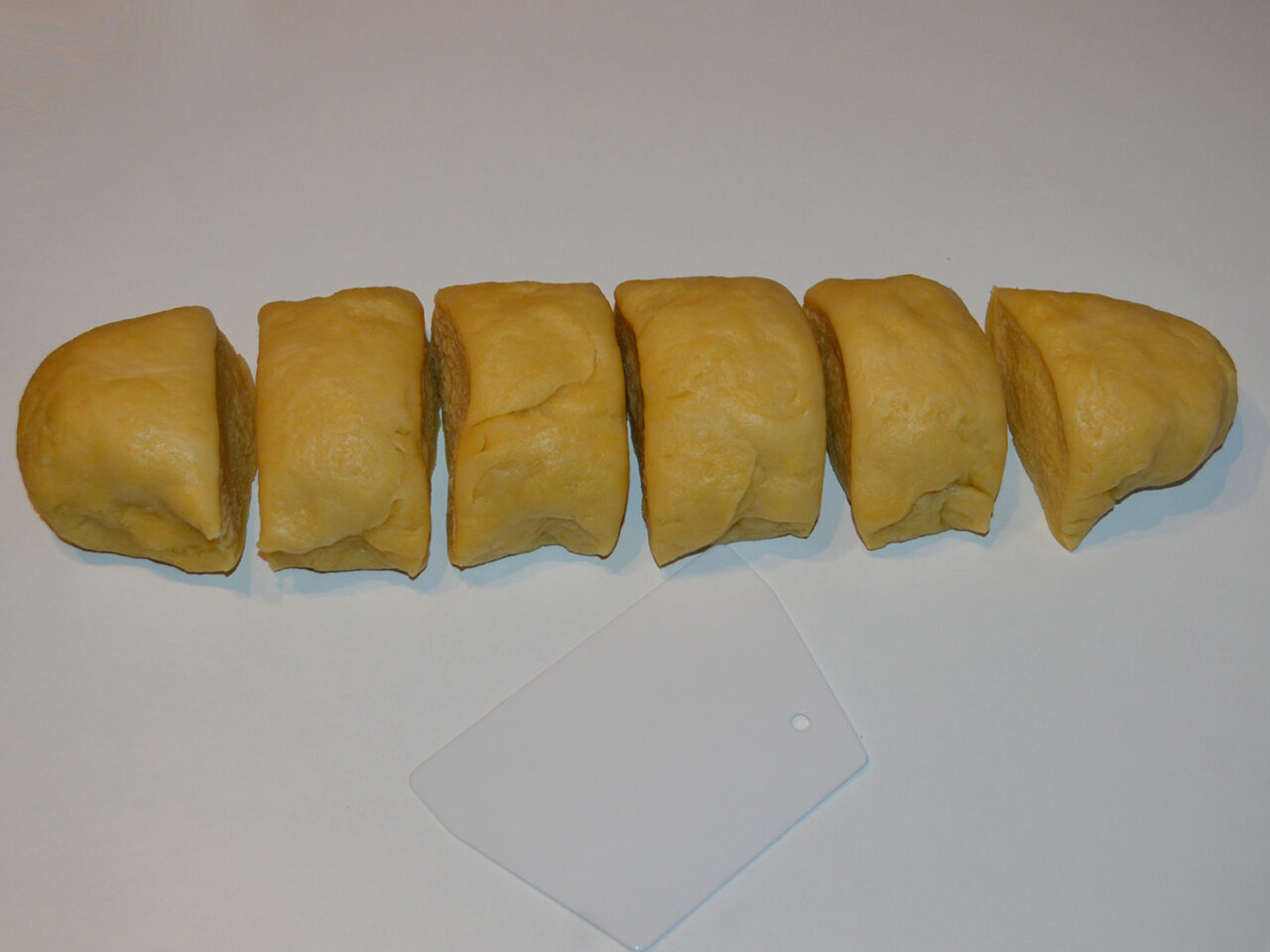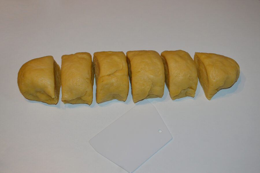 - Dupa ce aluatul a stat o ora il transferati pe masa de lucru si il impartiti in 6 bucati.