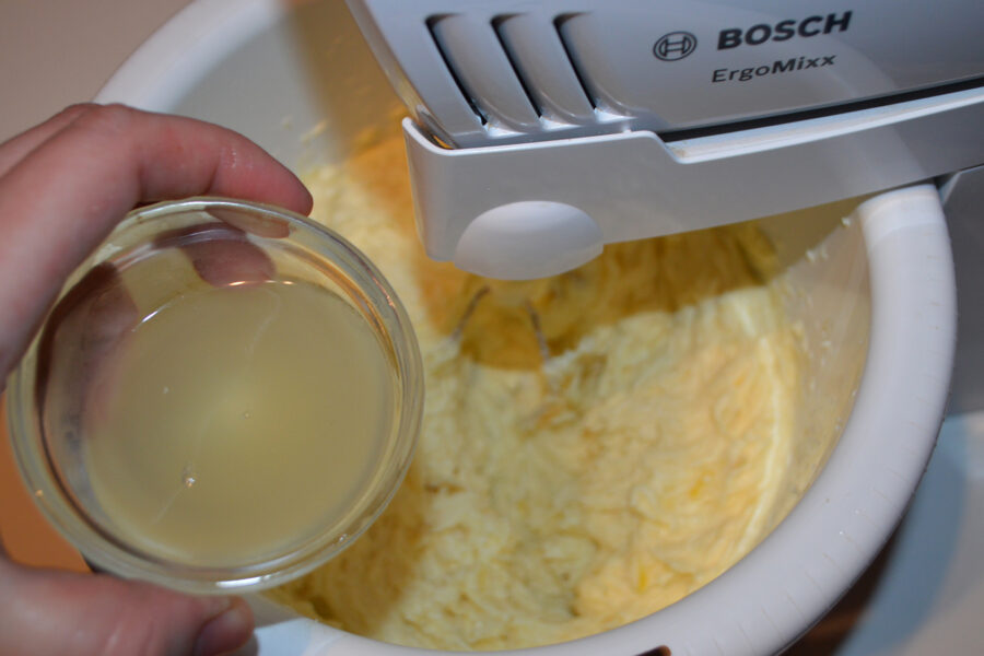 - Turnati cate putin din sucul de la o lamaie scursa, dar atent ca sa nu se taie crema. Gustati dupa fiecare transa de suc turnat, dupa gustul fiecaruia, puteti adauga mai mult sau mai putin.