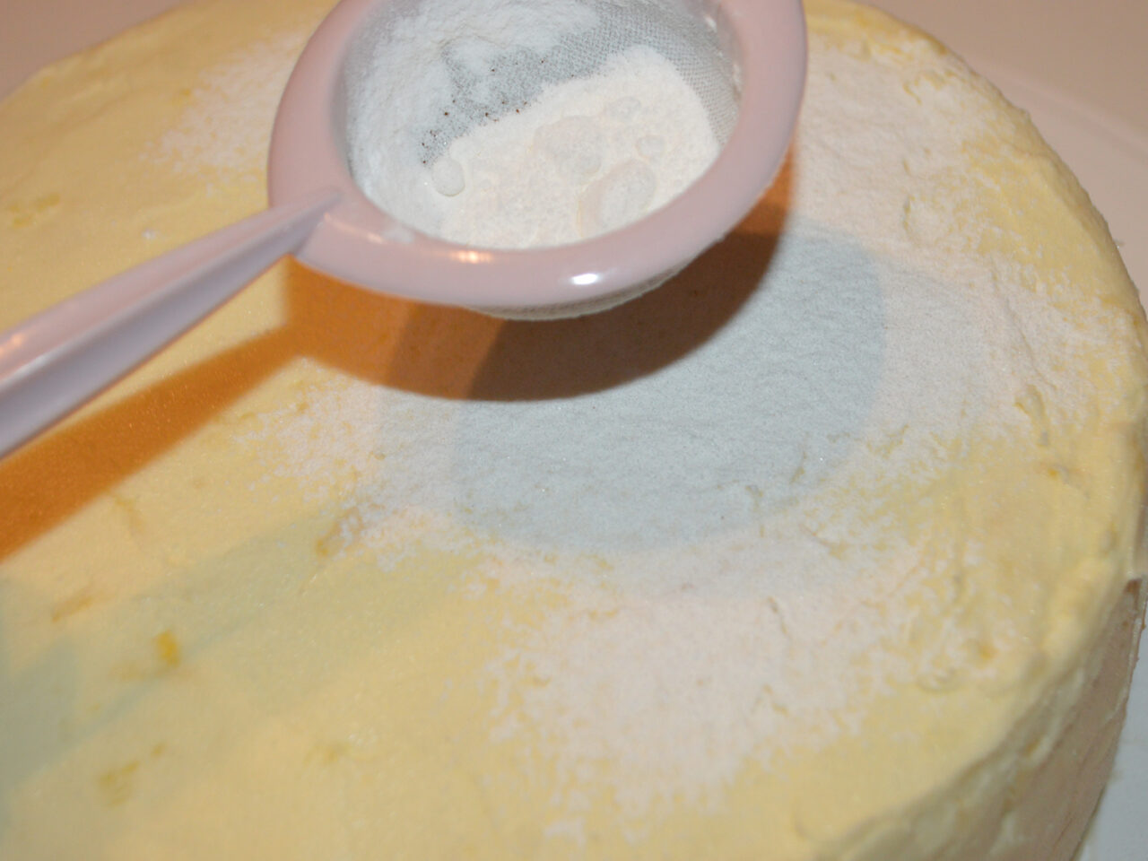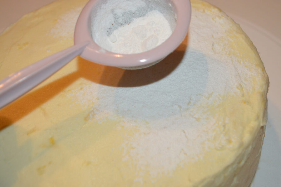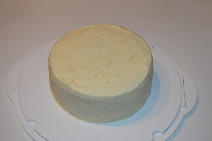 - A doua zi scoateti tortul din inelul de patiserie, si cu crema ramasa ungeti tortul si nivelati uniform cu ajutorul unui cutit.