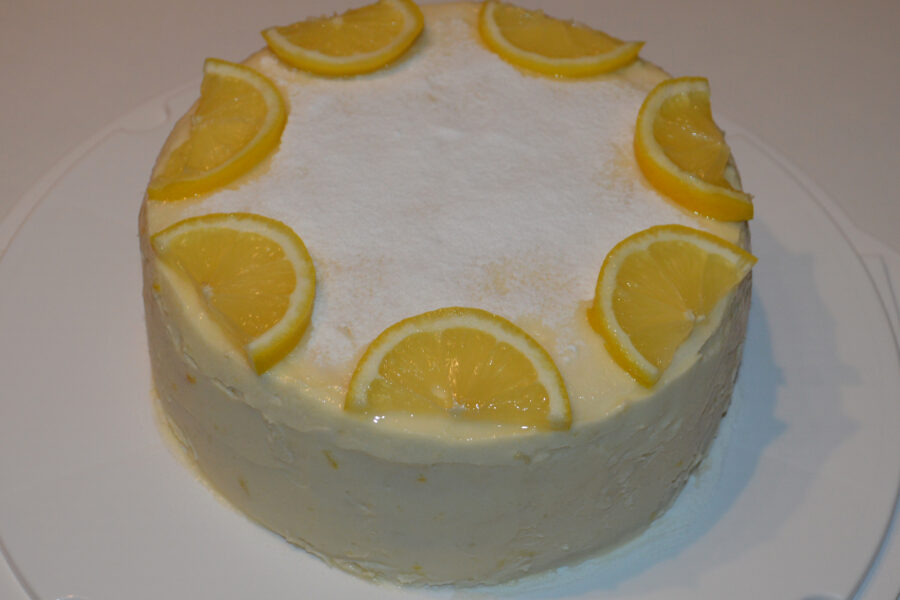 - Taiati din cealalta lamaie ramasa felii subtiri si decorati tortul dupa preferinta. Dati tortul la frigider pentru a se inmuia foile cat mai bine.