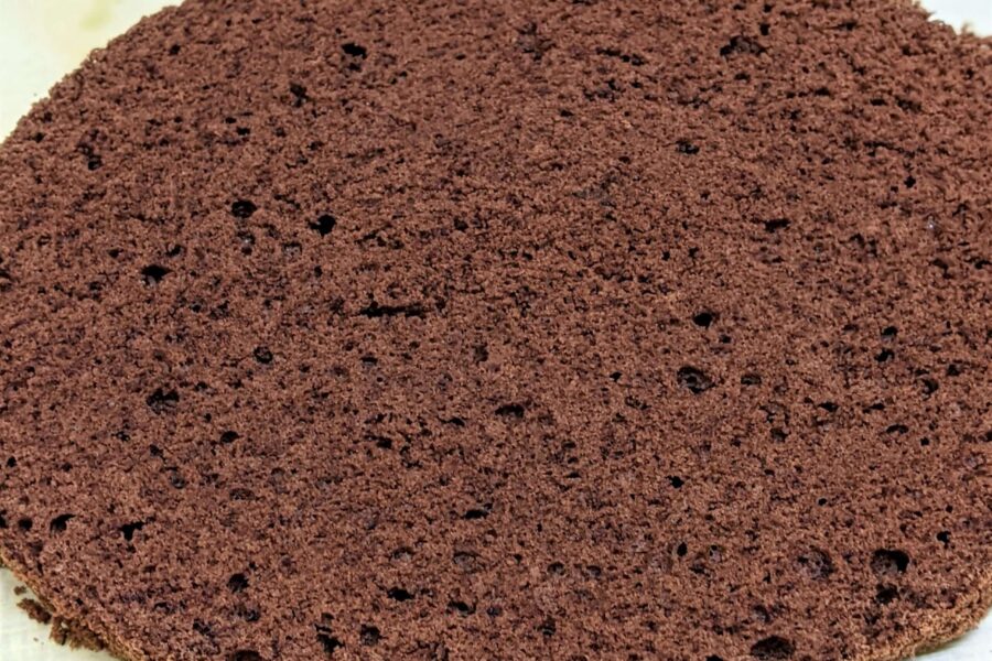 - Lasati tortul sa se raceasca si taiati in doua parti. In aceasta prajitura nu aliniati marginile, dar puteti vedea singuri.