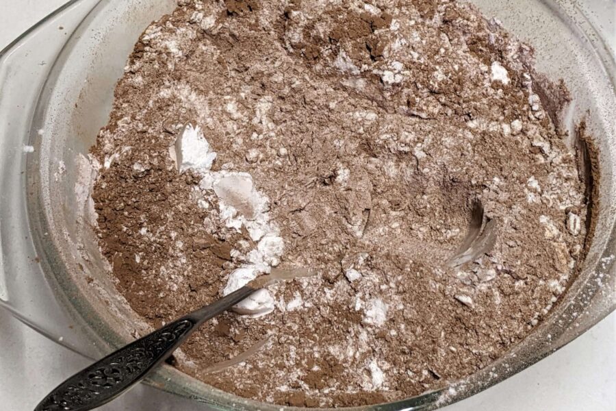 - Amestecati cacao, amidon si faina, cerneti totul printr-o sita. Combinati amestecul de faina cu praful de copt si sarea.